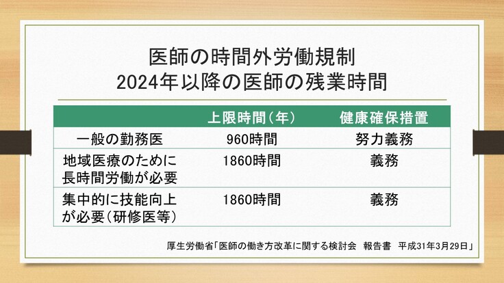現在の医療は医師の時間外のボランティアで成り立っているところも多数あり、長年見て見ぬふりをされていました。それにメスが入り、時間外労働が厳しく制限され守らない場合は使用者である医療機関に対して罰則が科されることになりました。