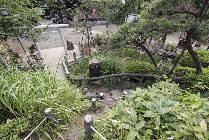さて、第一回目にご紹介するのは、鳩森八幡神社にある富士塚。JR千駄ヶ谷駅の近く、約六メートルの高さを誇る立派な富士塚で、東京都の有形民俗文化財にも指定されています。形や大きさもさることながら、山裾の里宮(浅間社)をはじめ、7合目の洞窟、烏帽子岩、釈迦の割れ石、山頂の奥宮など、富士山がかなり忠実に再現されており、完成度の高い状態で残されています。離れて見ても感動しますが、常時登拝可能ですので、登ってみて軽い登頂感を味わうのもオススメです!お近くに行かれる際は、ぜひ登ってみてください。