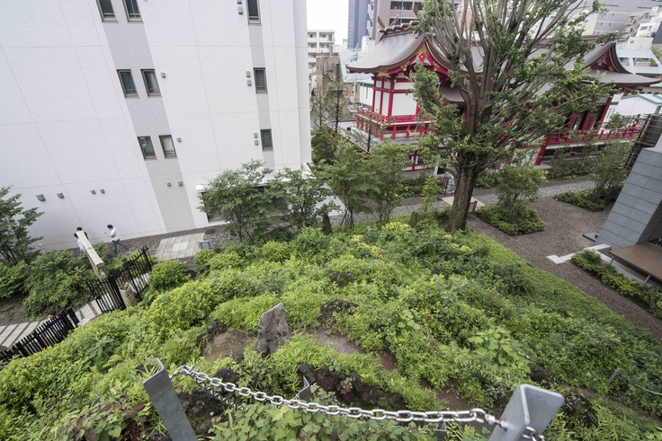 築かれたのは大正9年と、比較的新しいのですが、おすすめのポイントは、その高さと立地。西新宿のオフィス街にあり、ビルに囲まれて立つ高さ約12メートルの小山は、人工の建造物と、土や石や植物の色合いとのコントラスも相まって、インパクト十分。山肌には草木が生い茂り、ここが新宿であることを忘れてしまいます。急勾配で登り応えもる、まさに都心で味わえる富士登山です。