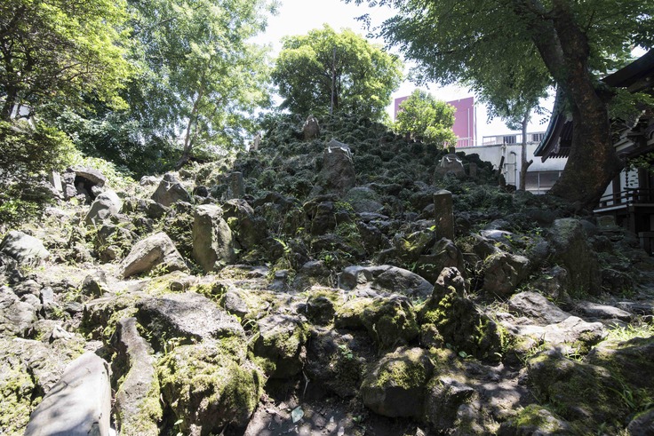 下町の雰囲気を残す台東区下谷、小野照崎神社境内の本殿隣に、静かに、だけど堂々と、その富士塚はあります。ごつごつとした富士山の溶岩石を積み上げただけのその姿は、まさに富士山の分身です。1828年に築造されたと言われる下谷坂本富士ですが、江戸当時の姿形を現代に残す数少ない富士塚で、国指定の重要有形民俗文化財でもあります。現在は柵で囲われ、大切に守られていますが、毎年富士山の開山に合わせて6月30日と7月1日にだけ扉が開かれ、登拝が可能になります。ぜひ一度は登っていただきたい富士塚です!