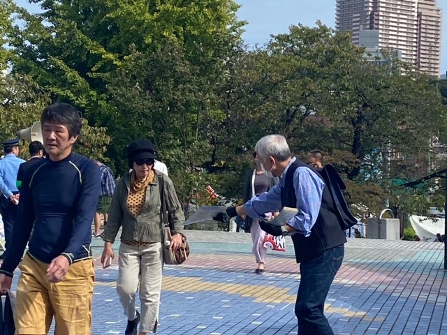 目黒さんままつりでの市民による告知活動(チラシ配り)の写真