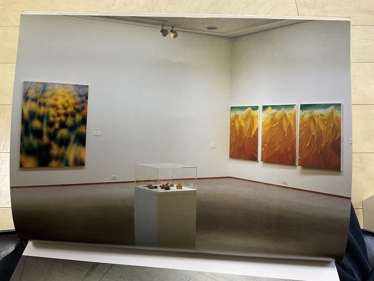 諏訪直樹の絶作「無限連鎖する絵画」の連作シリーズの展示 この建築空間があってこその展示となっていた。