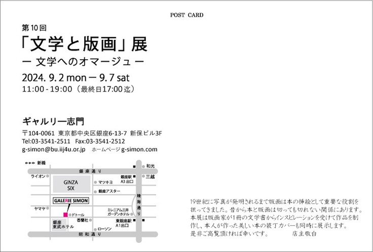 東銀座・ギャルリー志門 永井雅人が参加する「第10回文学と版画展〜文学へのオマージュ」が開催間近