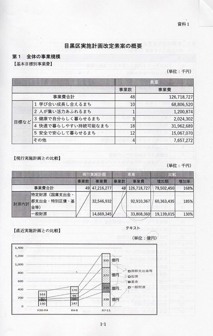 目黒区がもらう事をあてにしている都や国からの補助金が全333億円の算段である事が解りました!!