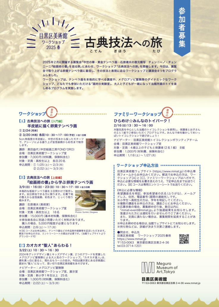 東京目黒区美術館の2、3月春のワークショップの古典技法講座のご案内 実技講座参加者募集中!テンペラ・フレスコなどの中世の絵画技法を専門家から学ぼう