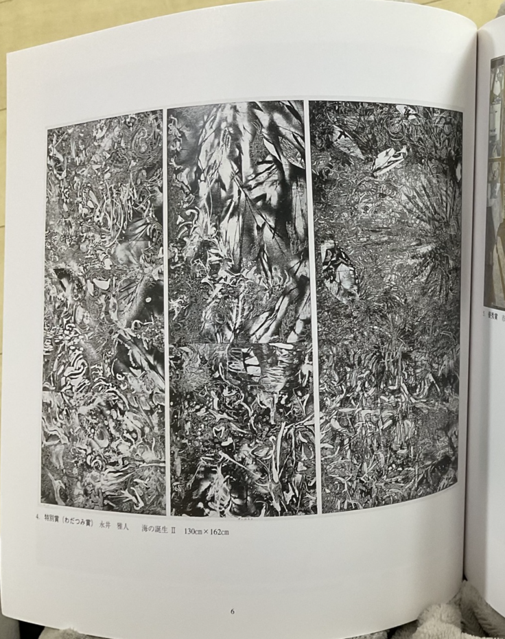 上の写真は石橋財団(旧石橋美術館、現在の久留米市美術館)が発行した展覧会図録に出ている私の大型銅版画作品(左ページの図版、海の誕生2)。