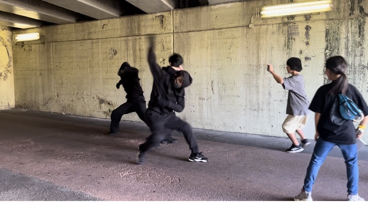アクション俳優さんを起用し、アクションスタジオで打ち合わせ、稽古をし、