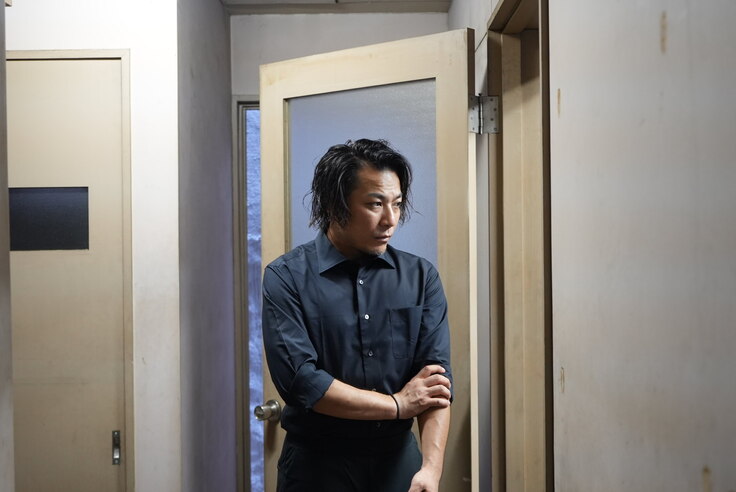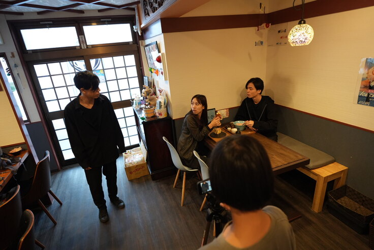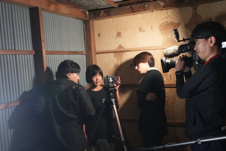 『廃墟スタジオ廃墟スタジオにて俳優さんと打ち合わせの今井監督』