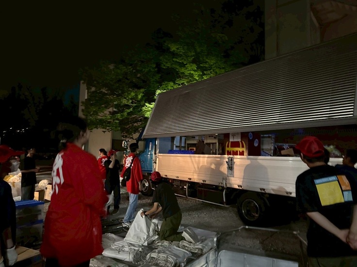 そこで名大祭実行委員会はトラックなどの車両を用いてその日のうちに撤収作業を終わらせます。