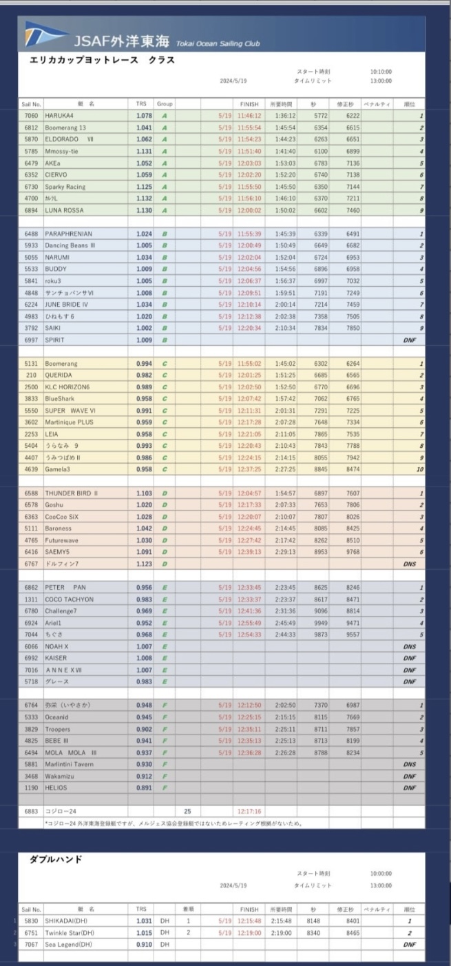 5/19日曜日はキールボート(メルジェス24)でエリカカップにオープンで参加させていただきました。ありがとうございます。