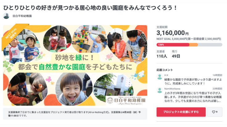 目白平和幼稚園のクラウドファンディングを応援くださり、誠にあ