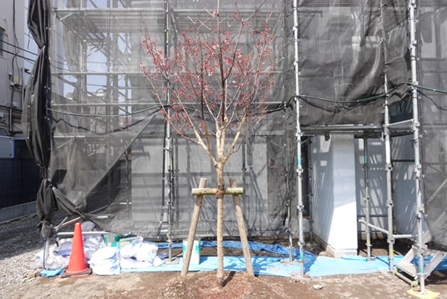 以前、卒園記念にいただき鉄棒の横できれいな花を咲かせていた“陽光桜”は、今年の花の終わる頃に移植し、礼拝堂の横に立っています。新園舎ができるとこの辺りが玄関付近になる予定です。来年は、きれいな花が見られるかな?完成したら是非、見にいらしてください。