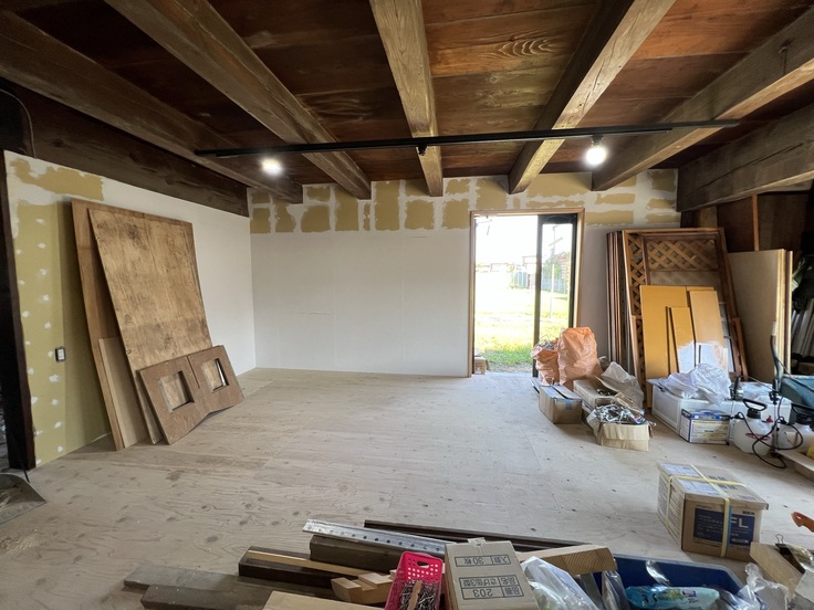 2022年10月現在、諦めずにこつこつと作業を続け、室内については、壁・床などの躯体はほぼ完成し、壁紙やフロアの施工・ドアや仕切りの取付を残すのみとなりました。