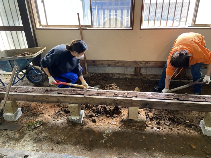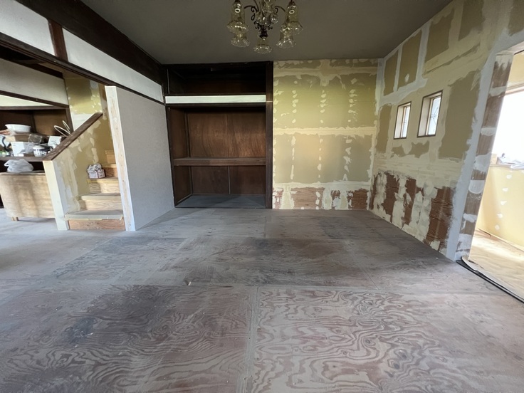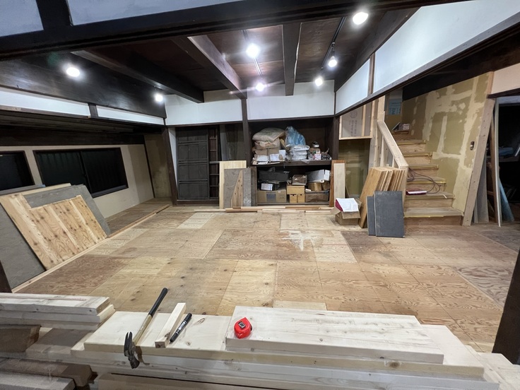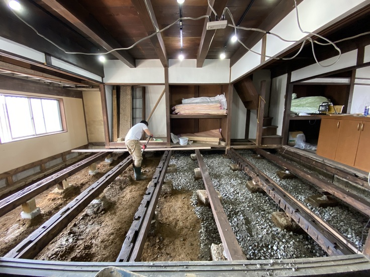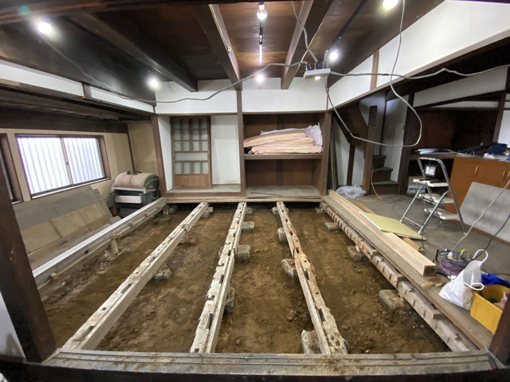 昨年、たくさんの方からのあたたかいご支援により、無事当初の目標金額を達成することができましたが、作業を進める中で床下の浸水により基礎が腐敗・水道管が破損している箇所があることがわかりました。1階は既存の床の全撤去、防水のためのコンクリート打設と基礎・水道管の組み直し、床板を貼り直す必要があり、そちらに追加で多額の予算を割く形になってしまいました。