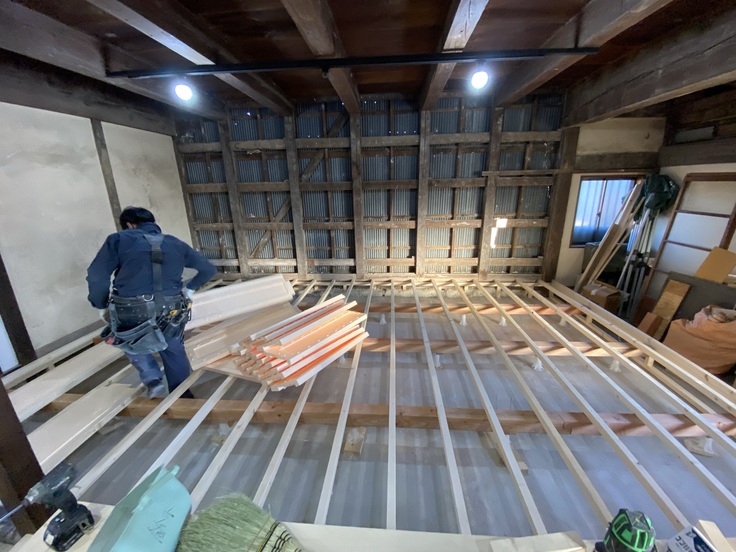 この基礎修繕作業を1階は全面行う必要があり、非常に時間がかかったため、作業が大幅に遅れてしまいました。さらに劣化した水道管・電気線の引き直しも必要になったところに資材価格の高騰が重なって、難航している状況です。