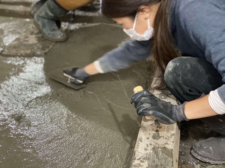 床下を掘り下げて砕石を入れ、自らの手でコンクリートを敷設しました。その後は台風や大雨でも水が流れこんでくることは一切ないことを確認し、ようやく新しい基礎を組み、床も貼ることができました。廃材や他の現場で余った材料を譲っていただいたり、剥がした床材を再利用し、ほぼ全てDIYで行うことで、コストを抑えることができました。たくさんの方々にアドバイスやご協力をいただき、本当にありがとうございました。