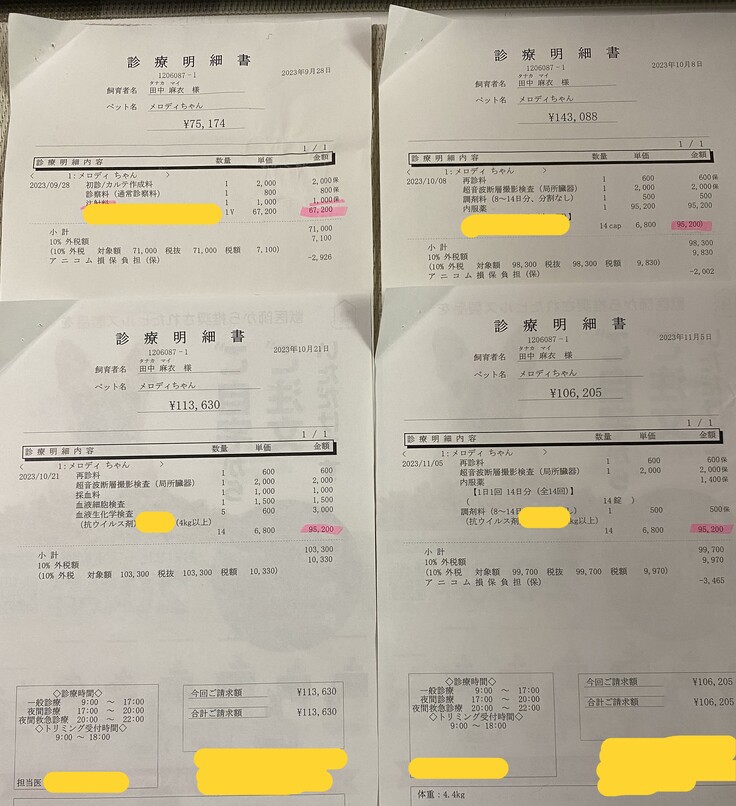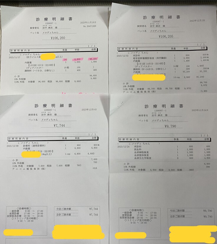ページ上に掲載している診断書や診療明細書などの資料は全て動物病院から掲載の許諾を得ております。
