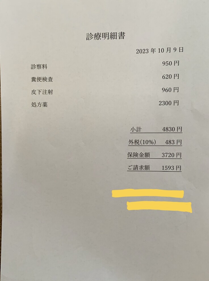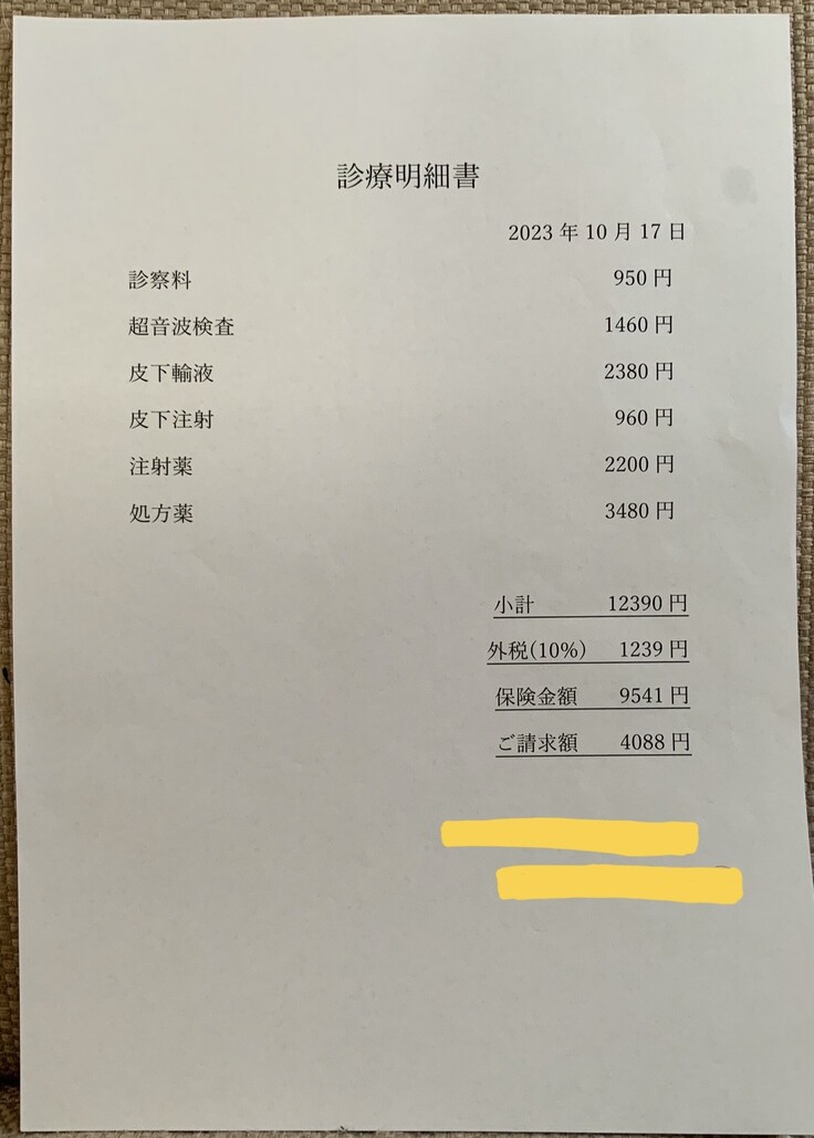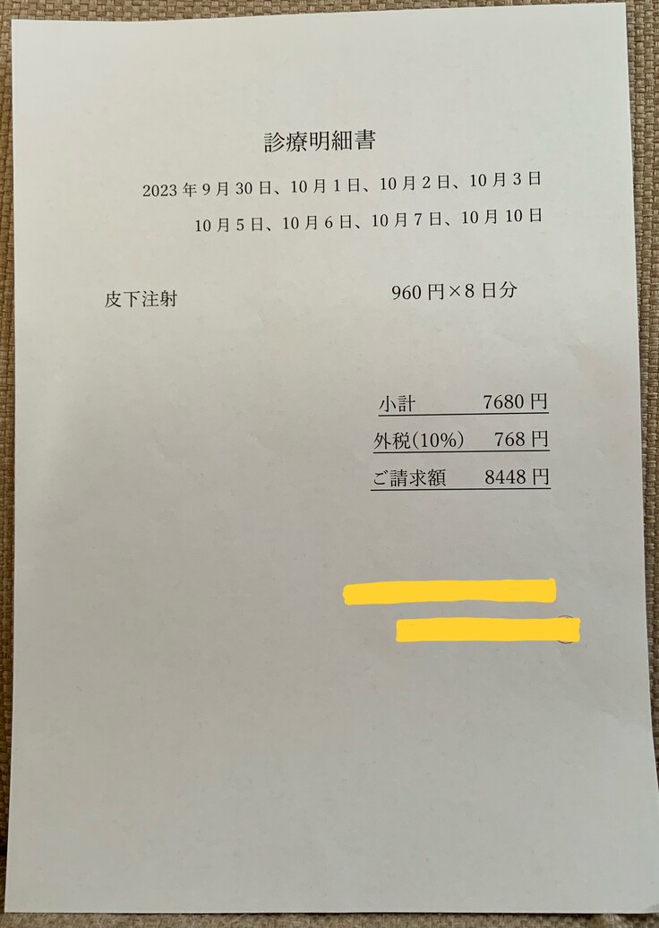 ※画像は全て掲載許可を得ており診療明細書は病院が作成してくださった明細です。