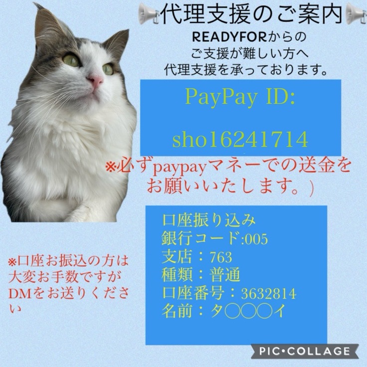 猫伝染性腹膜炎を患ったポンちゃんの明日をつないで頂けないでしょうか