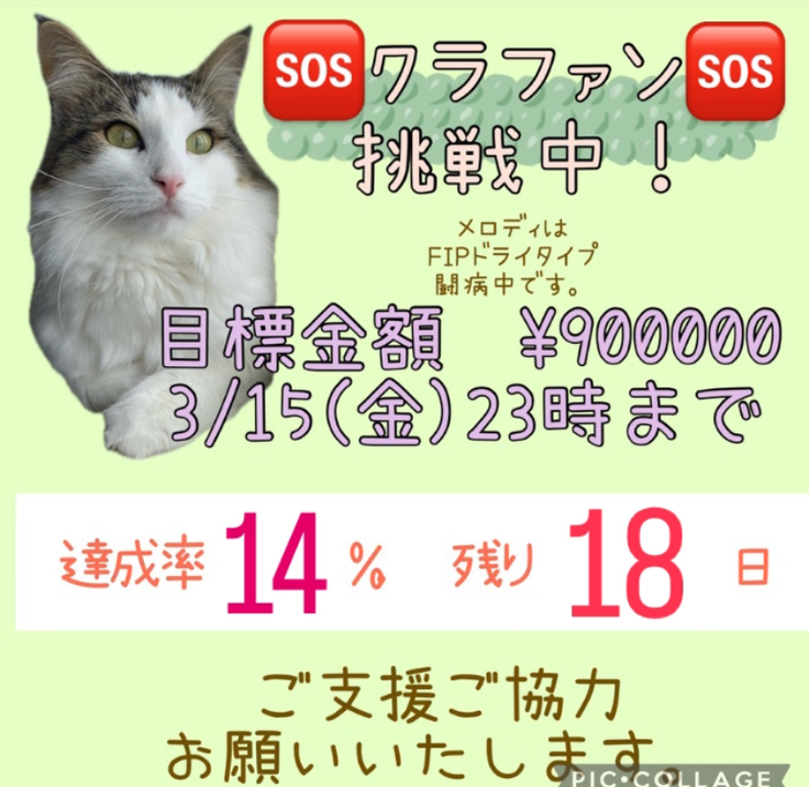 猫伝染性腹膜炎を患ったポンちゃんの明日をつないで頂けないでしょうか