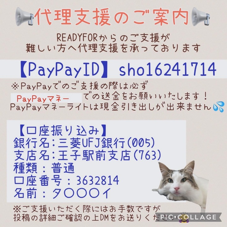 猫伝染性腹膜炎を患ったポンちゃんの明日をつないで頂けないでしょうか