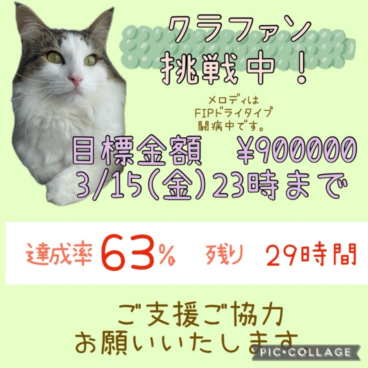 猫伝染性腹膜炎を患ったポンちゃんの明日をつないで頂けないでしょうか