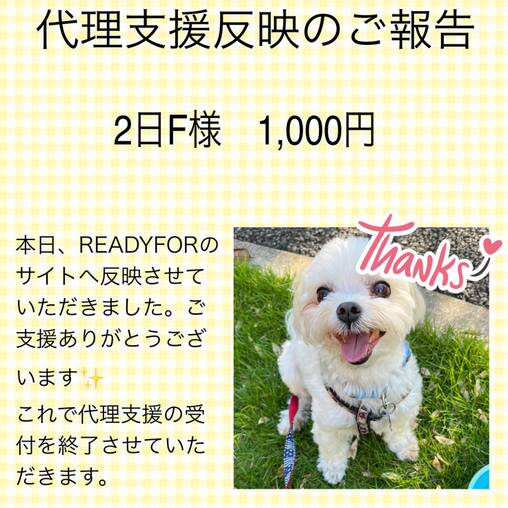 手術以外にも酸素室のレンタル代や薬代が必要なため、あまりリターンを用意できず申し訳ありません。
