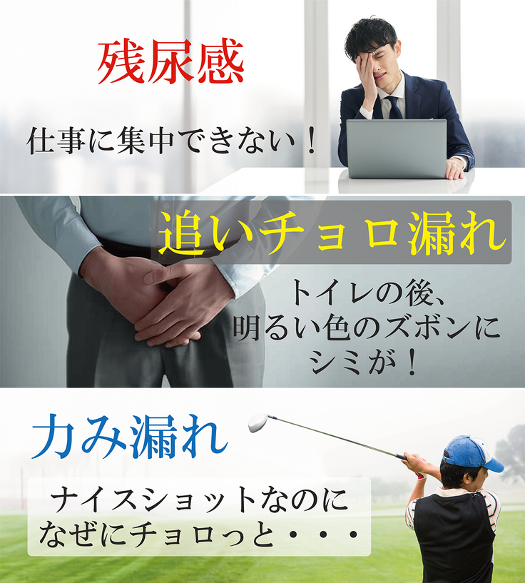 男性の「ちょい漏れ」の悩みを解決し、笑顔と自信を取り戻します。