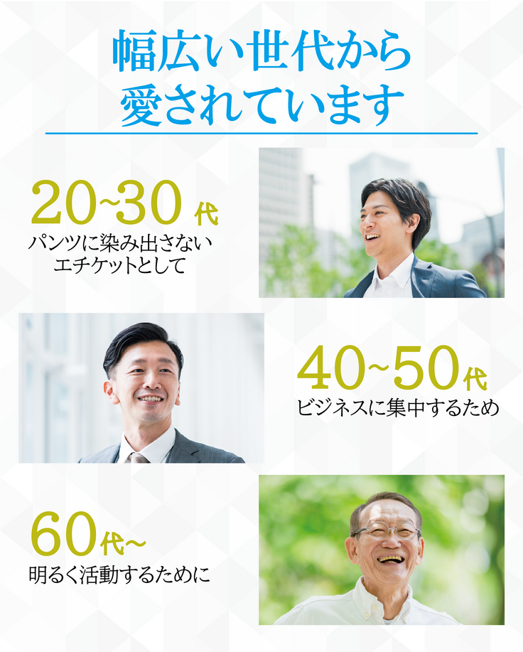 私たちは、ステルスガードが持つ『下着のような感覚で使える』という優位性をさらに広げ、年齢や生活スタイルに関わらず、
