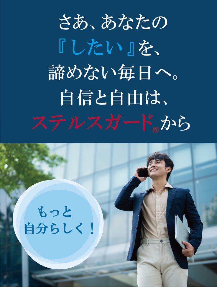 ステルスガードが、男性が自信を失うことなく、不安から解放され、仕事や趣味、そして家族との時間を、心から明るく活動的に楽しめる世界の実現に貢献すること。