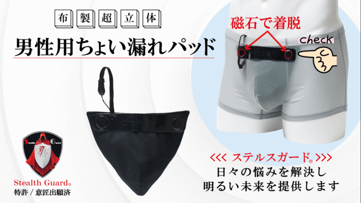 ✨ 男性特有のデリケートな「ちょい漏れ」を解決する布製パッド【ステルスガード】を開発しました。