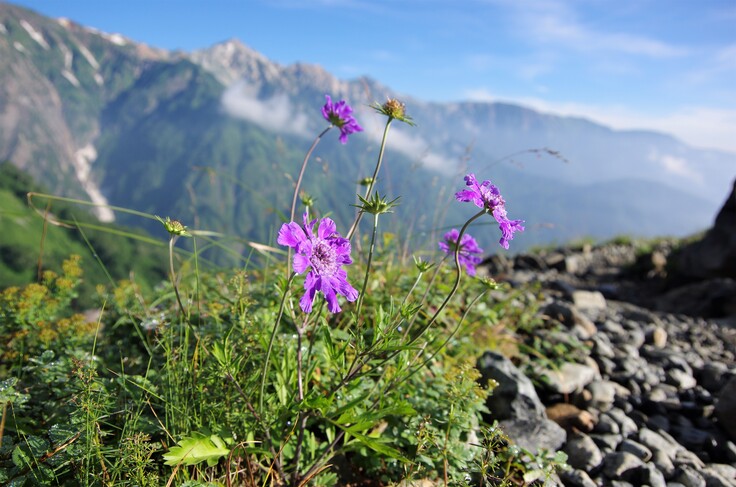 山麓から標高2,000m付近まで蛇紋岩(じゃもんがん)に覆われた八方尾根では地質、地形、気象などの自然環境により高山で見られる植物が亜高山帯で観察でき、蛇紋岩地特有の植物や八方尾根固有の植物が見られるなど特徴的な地域です。観光のお客様と自然を共存できる取り組みをこれからも続けていきます。