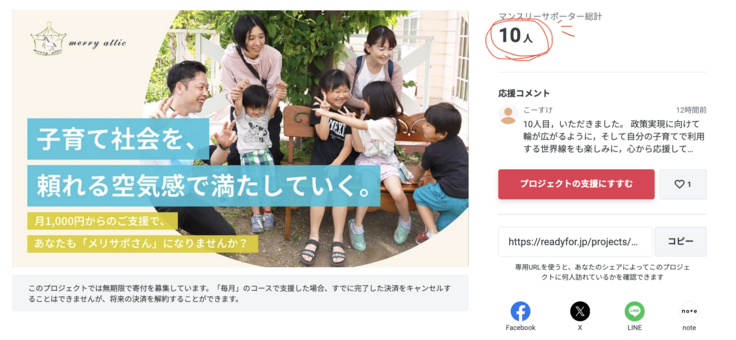 マンスリーサポーター(メリサポさん)が10人になりました!!