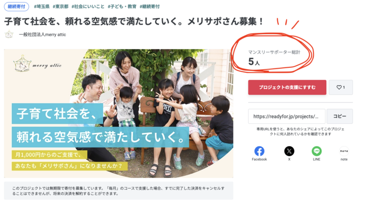 マンスリーサポーター(メリサポさん)が5人になりました!!
