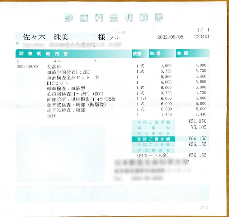 ※ペット保険は母名義のため、請求書が母の名前となっております。
