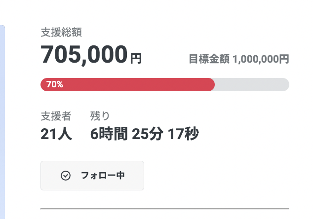 本日23時に終了!達成まであと30万円です