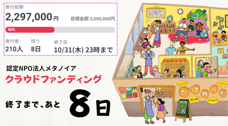 私たちの大きな挑戦であるこのクラウドファンディング「みんなでつくる、一緒に生きる。いつもあいてる日本語教室」も残り8日となりました。