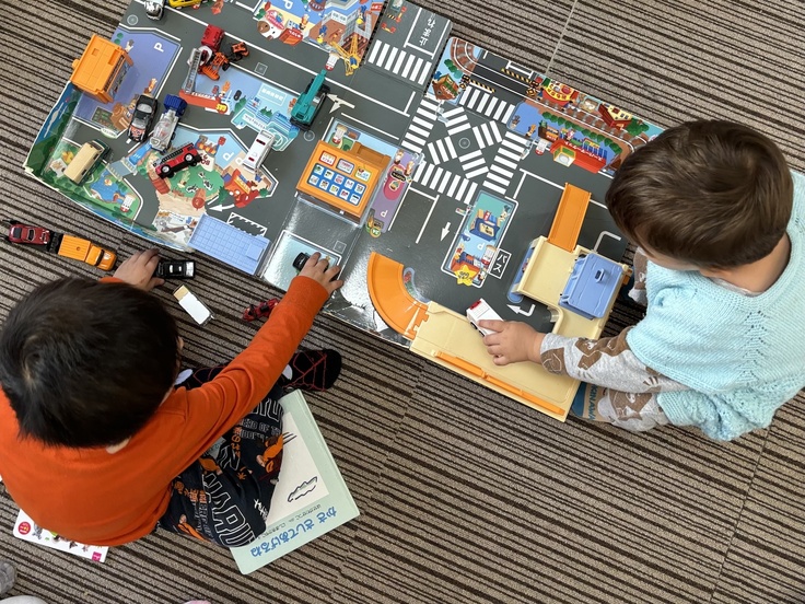 ▼ 車のおもちゃで遊ぶクルドの幼児たち。