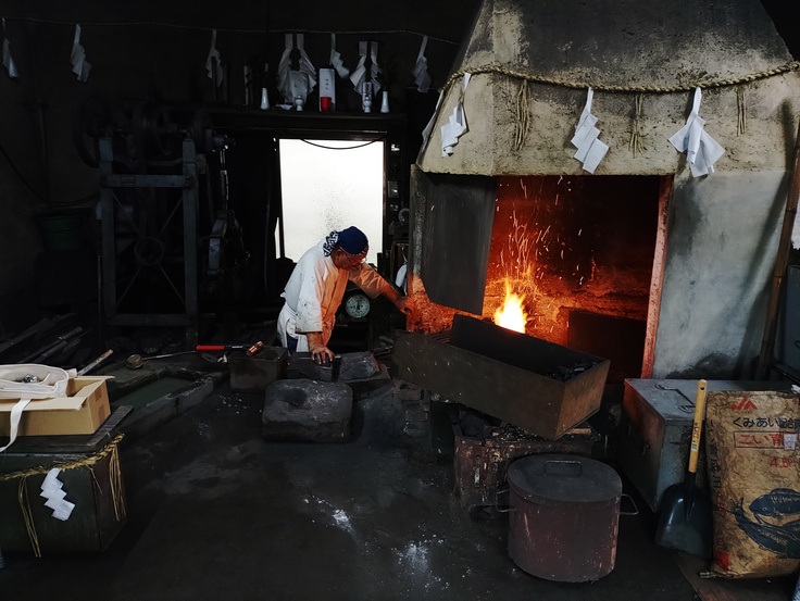 相性のいい隕鉄を得ることが大変難しく苦闘の連続です。一つの産地の隕鉄でも、炉の中で赤らめて鍛えると素直に伸びるものもあれば、砕け散るものもあります。隕鉄を加工した古代の鍛冶師も間違いなく同じような場面に出会ったに違いありません。