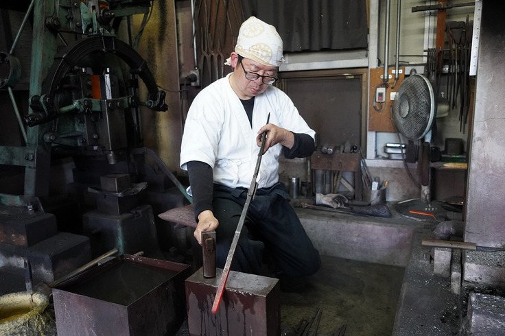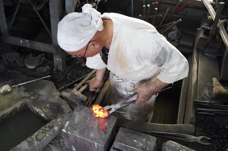 これから53代宗敬さんの作業が始まります。角棒の角を少しづつ潰し、四角形を八角形に、そして十六角形にと整え、最終的には円形に仕上げます。しかも相性のいい2本の箸を鍛えなければなりません。これからの宗敬さんの作業に大いに期待したいと思います。