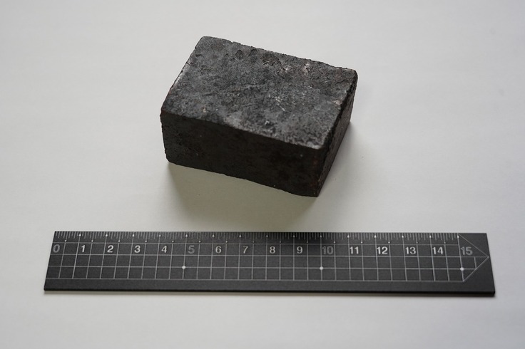 さて現在、兵庫県姫路市の53代明珍宗敬さんと刀匠の明珍宗裕さんご兄弟に隕鉄を素材とした火箸風鈴の鍛造に挑戦いただいています。宗裕さんが刀を鍛えるがごとく隕鉄を鍛延し、それを素材に、後日、宗敬さんが火箸の形に鍛えます。今回、宗裕さんが鍛えた隕鉄は、広島の刀匠、三上高慶(貞直)さんが1kgを超えるゴツゴツした隕鉄を慎重に鍛え、立方体に整えたものでした。三上刀匠→明珍刀匠→53代明珍というこれ以上はないというバトンタッチを身近で見て震える思いでした。