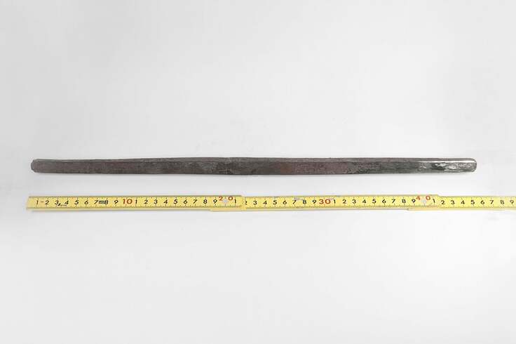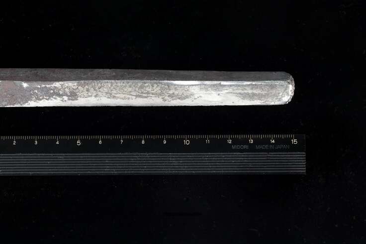 宗裕さんによる鍛造の結果、隕鉄は1cm角の46cm長の角棒に変身しました。