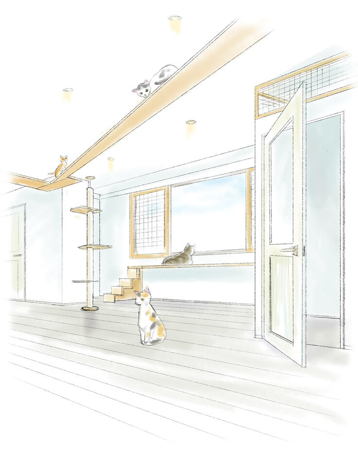 部屋を見渡しながら歩く「キャットウォーク」は猫達に人気です。「猫階段」「キャットタワー」から上り下りができます。