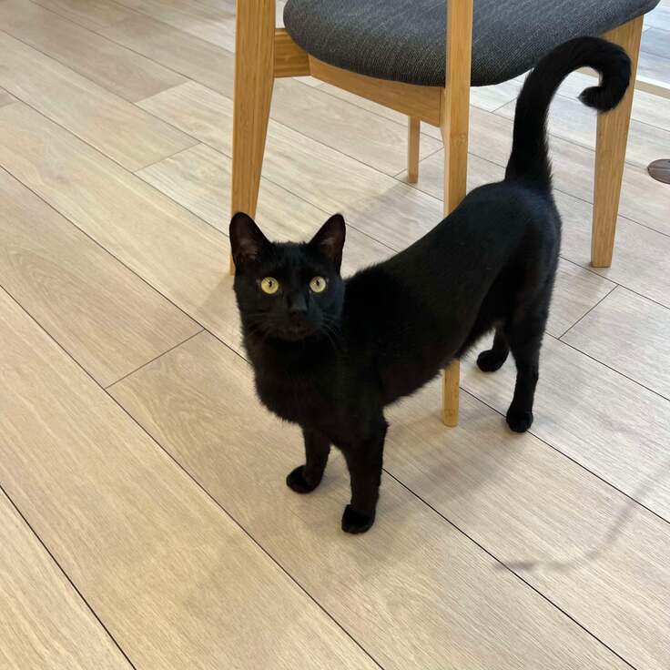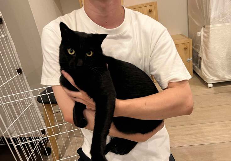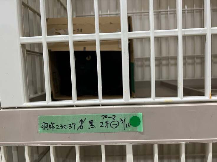 能登半島中部で被災した飼い主さんが所有権を放棄して、2月下旬、石川県に引き取られた黒猫プーマちゃん。去勢手術は行われていましたが、「屋外にて飼育されていた」との記録でした。