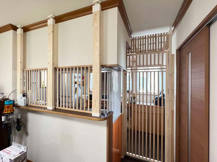 プーマちゃんが外へ出てしまわないよう、またキッチンで火傷することがないよう、扉や柵を手作りしてくださっています。面談の時にいろいろアドバイスさせていただいたのですが、それを上まわるような「猫がよろこぶお部屋」を設えてくださっていたのでした。