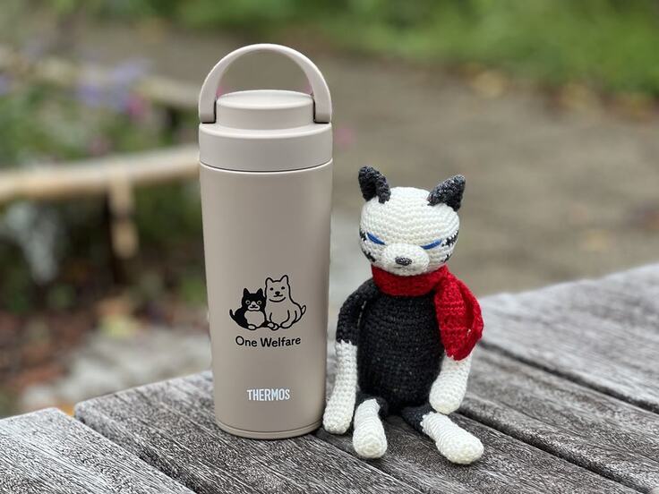 ※サーモスタンブラーと一緒に写っている猫のぬいぐるみ「あみねこ」さんはリターンに含まれません。
