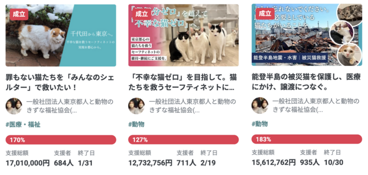 クラウドファンディングにも挑戦しながら、皆様のご支援で猫たちの命を繋いできました。