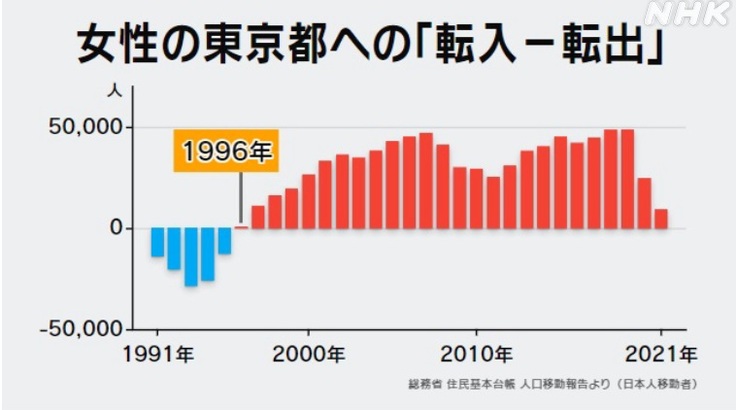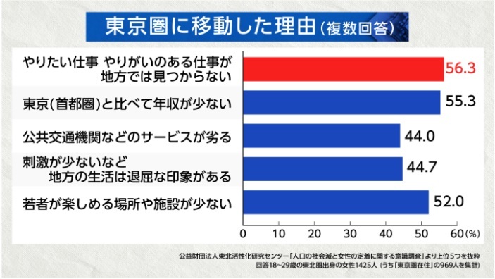では、どうして若い女性は、首都圏へ進出するのでしょうか。