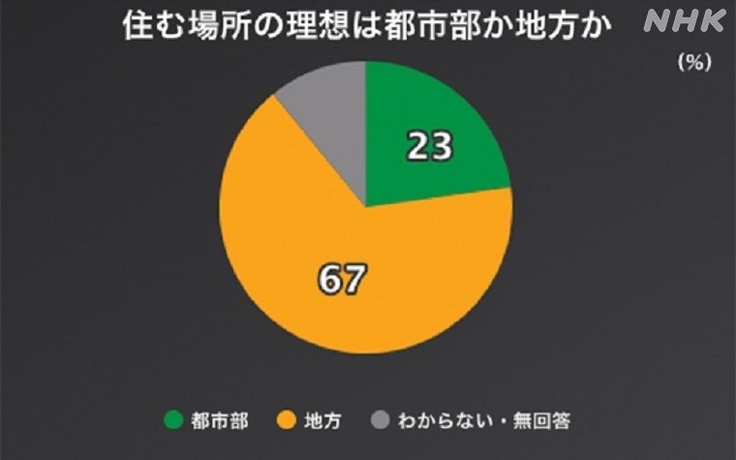 一方で、住みたい理想のところを都市部か地方部かを尋ねたところ、3分の2の方が地方部であると回答しております。