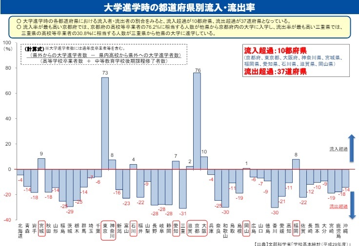 問題はここからです。実は大学に入学する際、学生人口が増えている都道府県は10都府県しかありません。